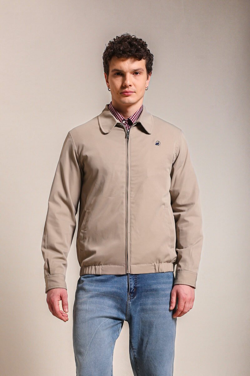 Cotton Twill Spread Collar Biege Jacket With Embroidery