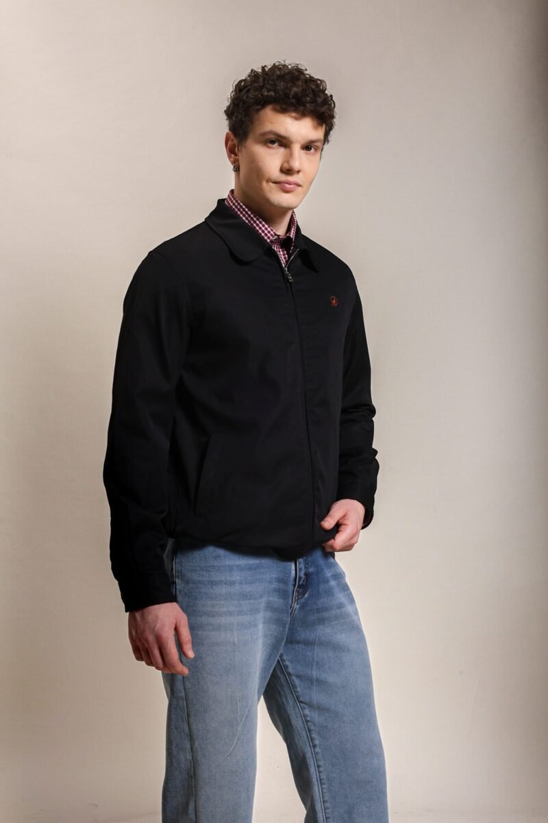 Cotton Twill Spread Collar Black Jacket With Embroidery