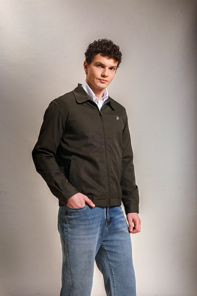 The jacket is made of 96% cotton and 4% spandex, with a 100% cotton inner lining.